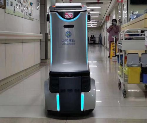 達(dá)闥科技公司和中國移動聯(lián)合研發(fā)5G云端智能運(yùn)輸機(jī)器人已在浙大二醫(yī)院應(yīng)用,可替代醫(yī)護(hù)人員為患者提供藥品,機(jī)器人身上的分層儲物柜,可實現(xiàn)一次多單的配送。